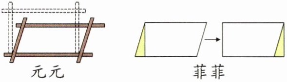 (1) 元元和菲菲用两种不同的方法将平行四边形变成了长方形,关于平行四边形面积的变化,下面说法正确的是(