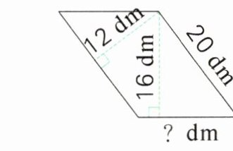 5. 如图,把一个长方形框架拉成平行四边形后,面积是 $ 24 dm^2 $。原长方形框架的周长是多少分米?