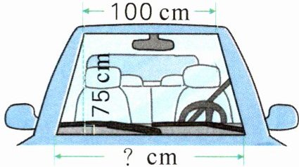 3. 汽车的挡风玻璃近似梯形,一辆汽车的挡风玻璃如下图所示。这块挡风玻璃的面积约是$ 9000 cm^2,$下底约是多少厘米?