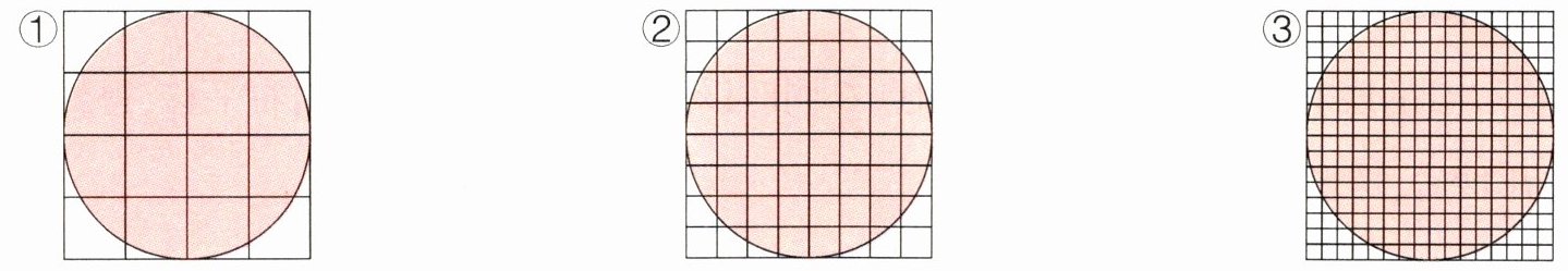 $cm^{2}$。(3) 图③中每个方格的边长代表1 cm,圆的面积约是