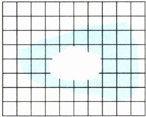 4. 如图,涂色部分是湖,中间是一个小岛,湖的面积约是多少平方米? (每个小方格的面积是$100m^{2}$)
