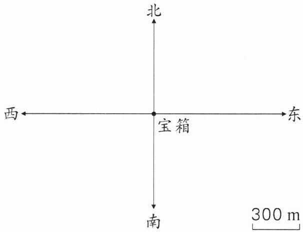 2. 在“夺宝”游戏中,需要找到4把钥匙才能打开宝箱。如图是一张藏宝图,以宝箱为观测点,请根据提示在图中标出4把钥匙的位置。