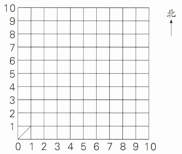3. 如果右图中一个小正方形的对角线长$20$m,则点$(0,0)东偏北45^{\circ}方向40$m处是点$A($ ,$)$,点$(0,4)南偏东45^{\circ}方向20$m处是点$B($ ,$)$,点$(7,8)西偏南45^{\circ}方向60$m处是点$C($ ,$)$,点$(10,3)北偏西45^{\circ}方向80$m处是点$D($ ,$)$。在图中标出点$A$、$B$、$C$、$D$的位置。