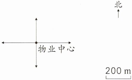 [解析]在平面图上标出物体的位置时,先确定观测点,再根据描述的方向和距离确定目标点的位置。“1号楼在物业中心的北偏西40°方向400m 处”是以物业中心为观测点画图;“1号楼也在2号楼的东偏北20°方向600m处”是以2号楼为观测点,2号楼的位置未知,那么可以这样想:“2号楼在1号楼的西偏南20°方向600m处”,即以1号楼为观测点画图。