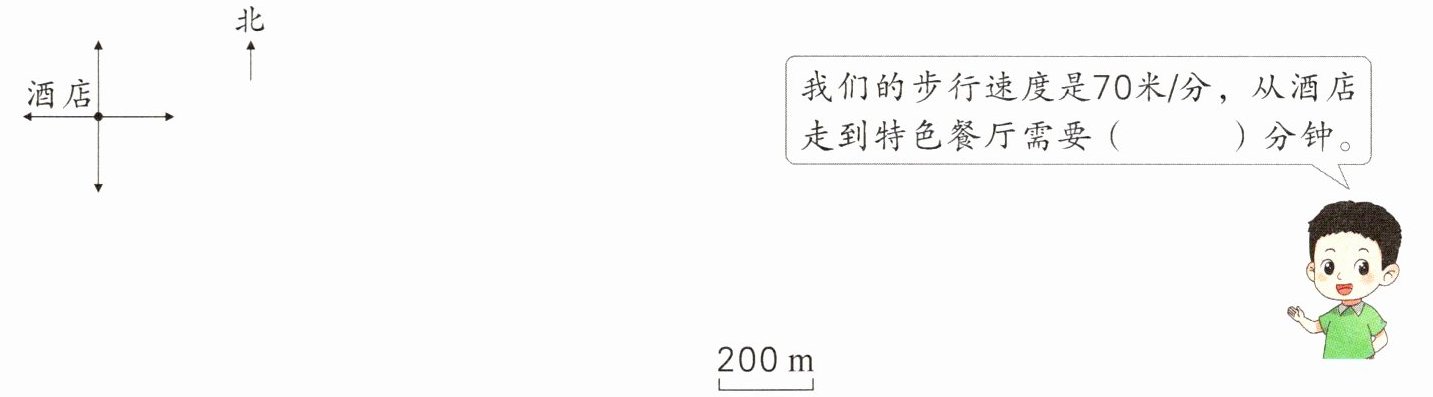 我们的步行速度是70米/分,从酒店走到特色餐厅需要( )分钟。