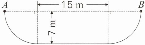 5. 下图是一个U型滑雪场地,李乐从A点沿着图中实线滑行到B点,滑过的路线可以近似看作两个半径相同的$\frac{1}{4}$圆周和一条长15m的线段的组合。李乐滑过的路程是多少米?