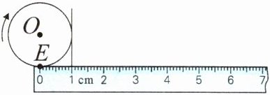 (2) 如图,点E是圆上一点,圆沿着直尺向右滚动一周后,点E的位置在(