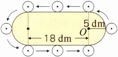 3. 扫地机器人来到客厅,贴合着一块地毯边缘行进一周(如图)。这块地毯的两端是半圆形,中间是长方形。扫地机器人底面圆的圆心走过的路线长度是多少厘米?