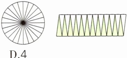 (1) 把一个直径是 $ 4 cm $ 的圆分成若干等份,然后把它剪开,照如图的样子拼起来,拼成的图形的周长比原来圆的周长长(