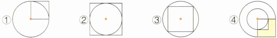 )$ dm^2 $。(4) 图④中,如果涂色部分的面积是 $ 15 cm^2 $,那么圆环的面积是(