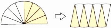 (2) 如图,将一个半圆沿半径分成若干(偶数)等份,然后拼成一个近似的长方形,拼成的长方形的周长与半圆的周长相比,(
