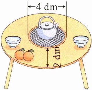 4. 围炉煮茶是一种喝茶新形式。如下图的围炉,中间是圆形烤盘,周围是圆环形桌面。桌面的面积是多少平方分米?
