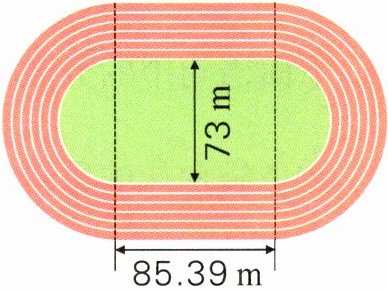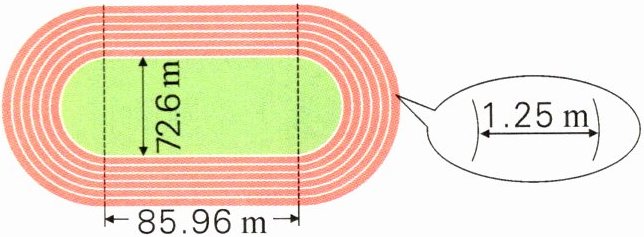 3. 右图所示跑道的直道长 85.39 m,两端的弯道呈半圆形,最内圈的直径是73 m,跑道宽 1.22 m。