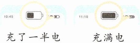 4. 李老师给手机充电,手机右上角的百分数表示手机目前的电量状态。充到一半时,电量显示为(