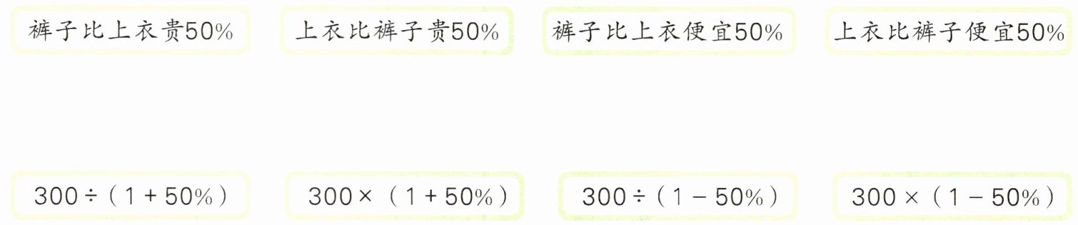 一件上衣 $300$ 元,______。一条裤子多少钱?