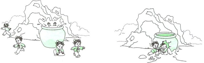 七、〔生活情境〕戏剧社正在排练情景剧——《司马光砸缸》。结合图片,选择正确的选项补全小演员之间的对话,将序号写在横线上。