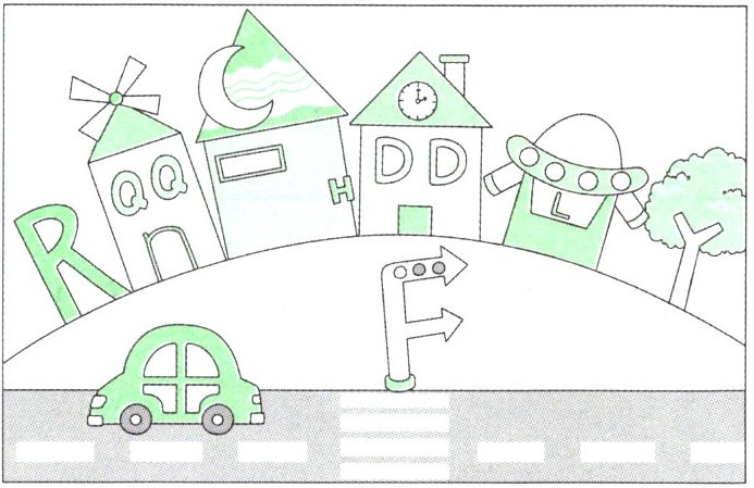 五、神秘侦探社的图片解谜活动吸引了很多同学。找出图片中隐藏的字母,按照字母表顺序将其大小写形式规范书写在四线三格内。(5分)