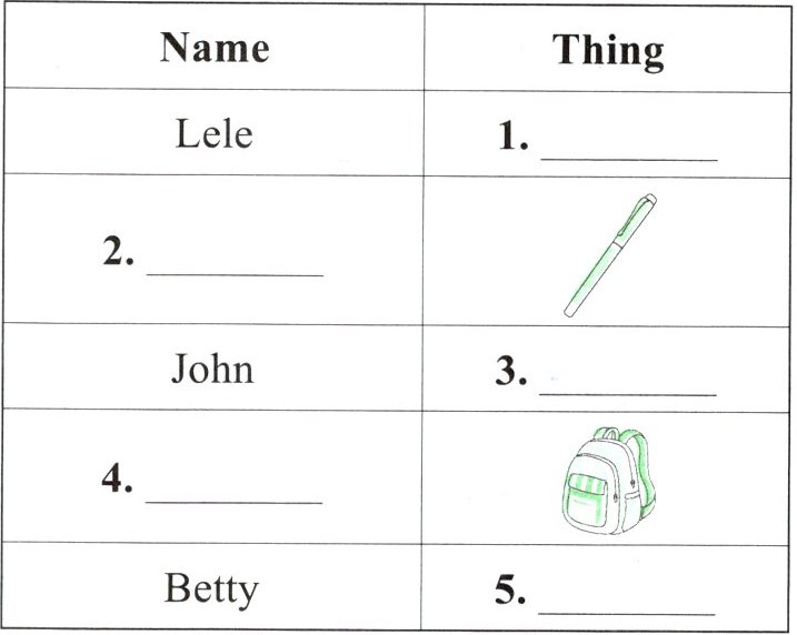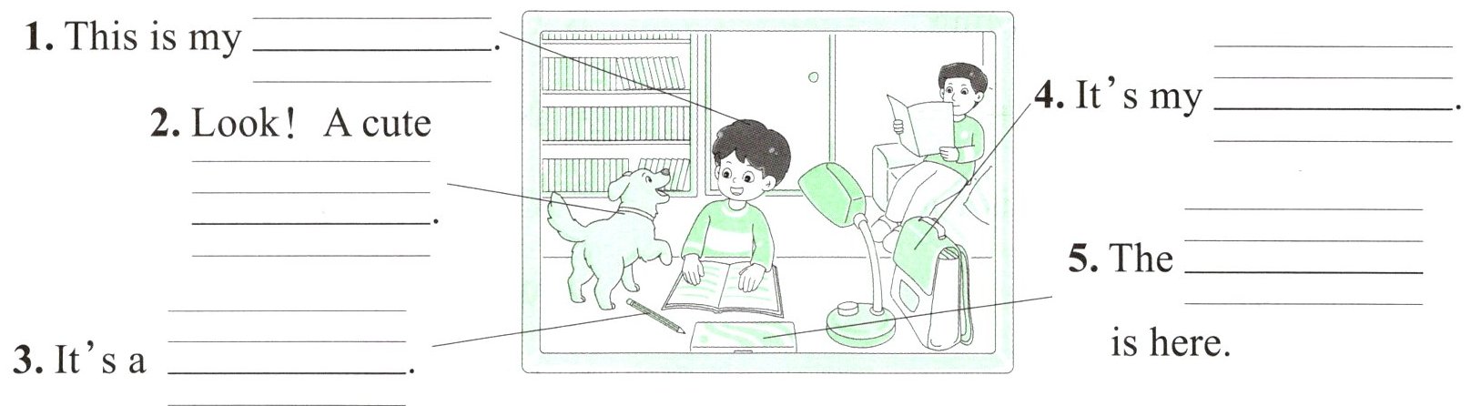 1. brother 2. dog 3. pencil 4. schoolbag 5. pencil box
