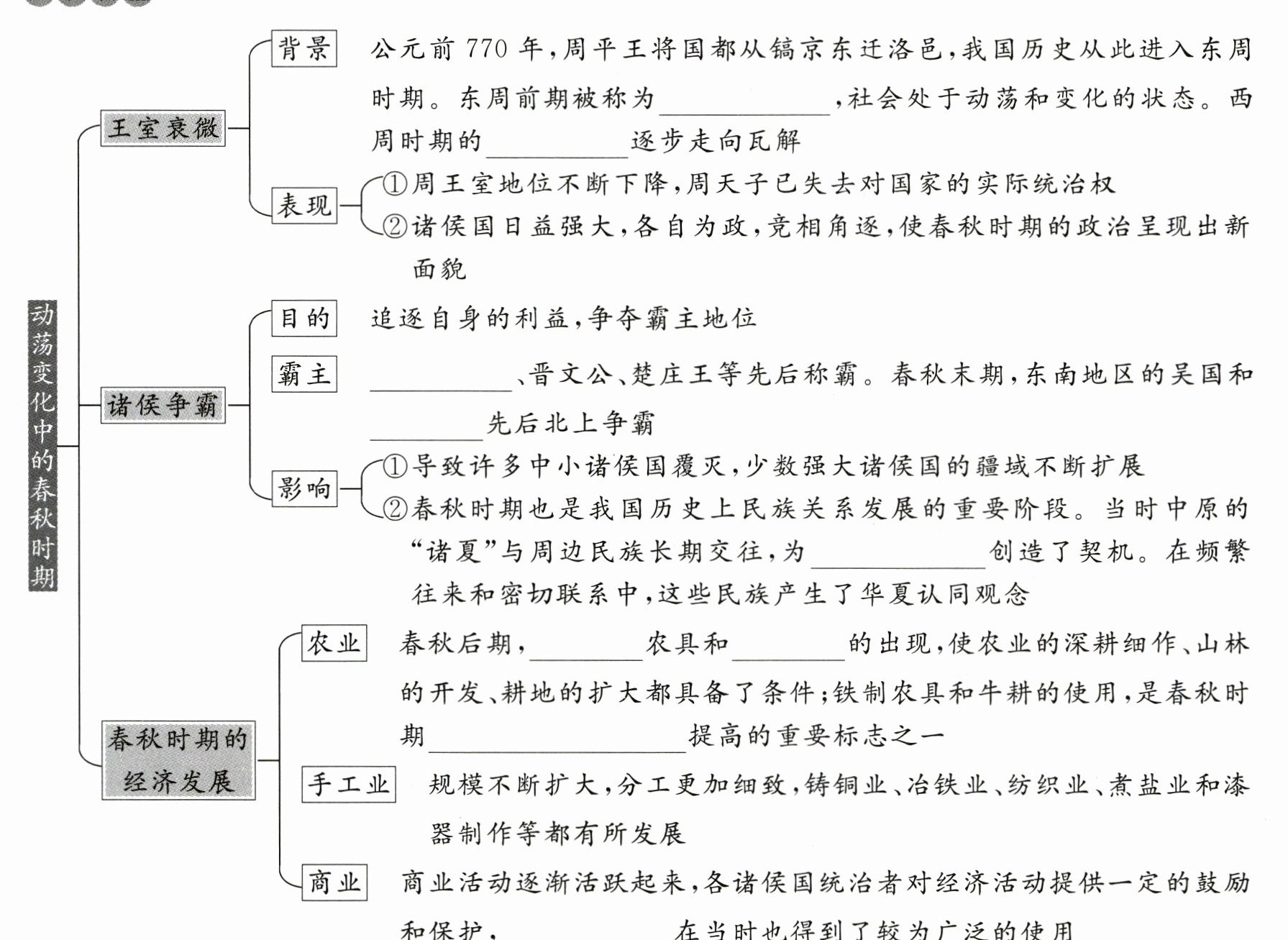 春秋时期 分封制 齐桓公 越国 民族交融 铁制 牛耕 农业生产力水平 金属货币
