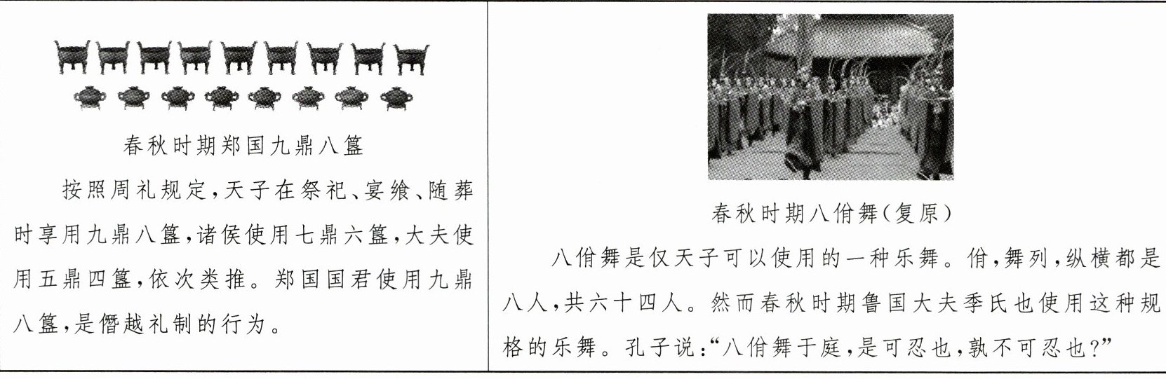 (1)现象:周王室地位下降,诸侯僭越礼制(或礼乐制度瓦解、礼崩乐坏)。(2分)原因:①平王东迁后周王室领地大幅缩小;②周王在名义上仍是天下"共主",但权威明显削弱,渐渐失去对各地诸侯的控制;③诸侯国日益强大,各自为政,不再定期朝觐天子和向周王室缴纳贡赋,导致周王室财政入不敷出,困难重重。(答出两点即可,2分)