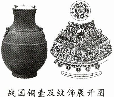 2. (史料实证)(2024·京山市期中)下图是1965年出土于四川成都的战国铜壶,壶身刻有水陆攻战图案,展现了人们习射、攻城、舟战等场景,被誉为战国的“清明上河图”。该铜壶反映的时代特征是(