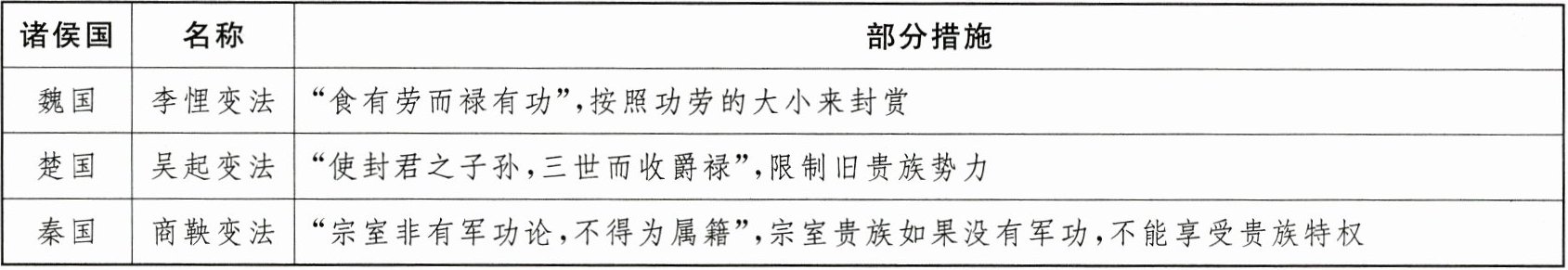 4. (2024·安徽中考)下表为战国时期一些诸侯国实行的变法。表中措施(