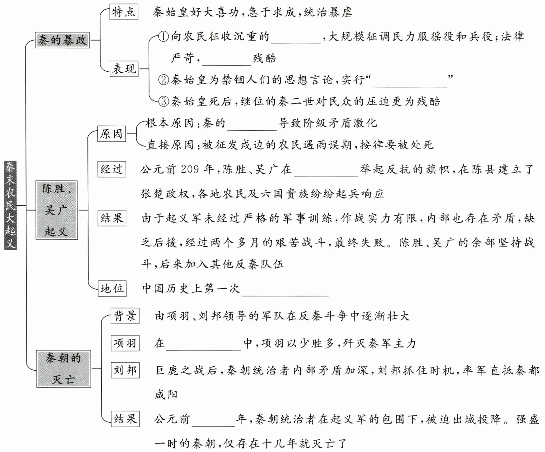 赋税 刑罚 焚书坑儒 暴政 大泽乡 农民大起义 巨鹿之战 207