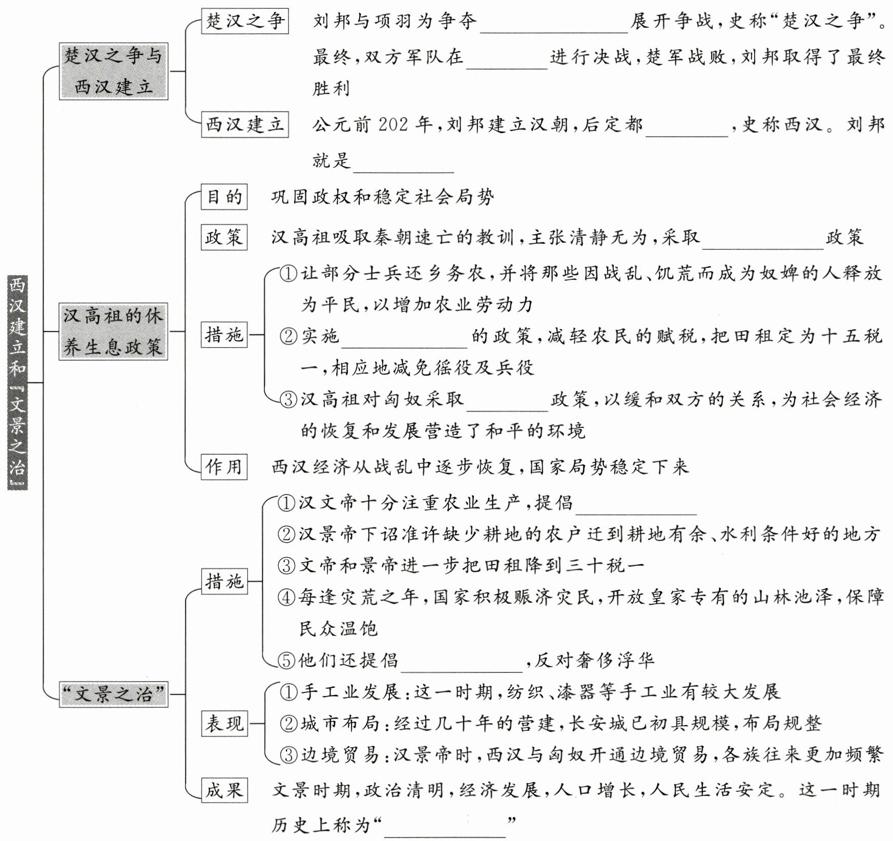 国家统治权 垓下 长安 汉高祖 休养生息 轻徭薄赋 和亲 以农为本 勤俭治国 文景之治