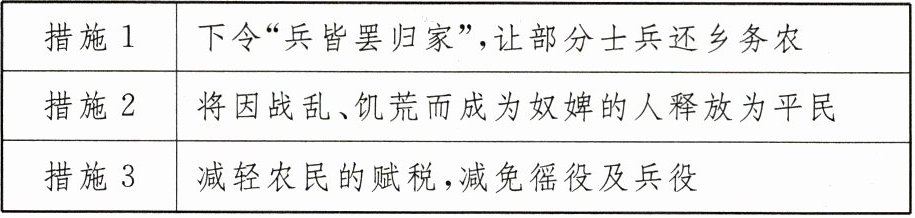 4. (2024·丹江口市期中改编)下表反映出汉初实行的政策是(