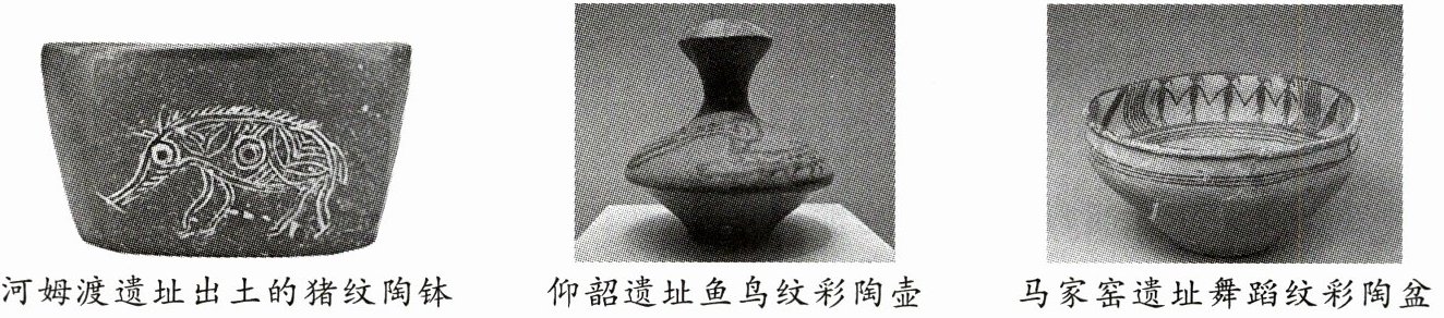 9. (2025·鄂州市期末)考古发现是了解原始社会历史的重要依据之一。下面的出土文物在器物造型和图案设计上很有特点,可以印证我国原始居民(