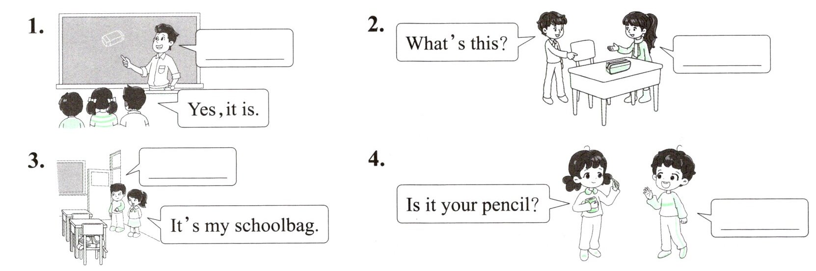 四、看图,选择合适的选项补全对话,将序号填在横线上。