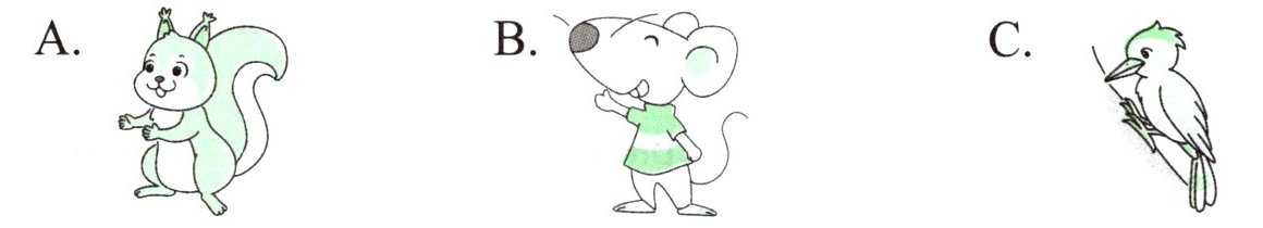 五、〔趣味故事〕小熊 Roby 有一个漂亮的新书包,但是书包里总会发出奇怪的声音,里面有什么呢?阅读绘本,选择正确答案。