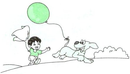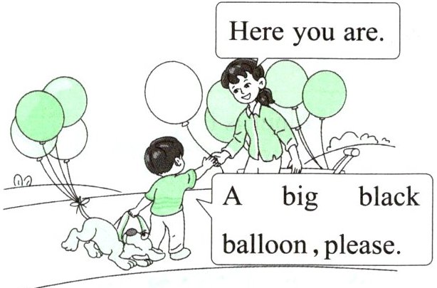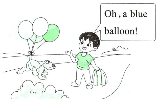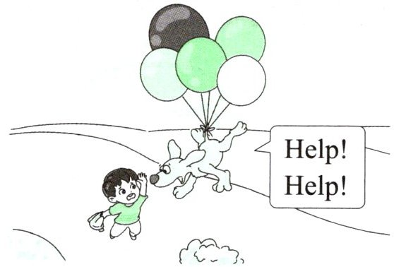 四、Tom 带着小狗 Ted 在公园里玩耍,他们遇到了一位卖气球的阿姨。接下来发生了什么有趣的事情呢?阅读绘本,完成下列任务。