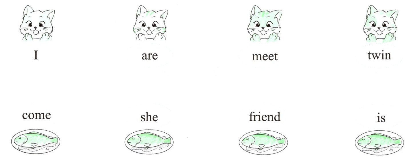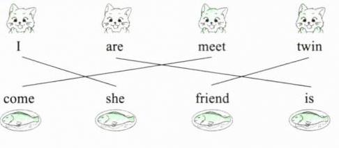 一、将同类词连线,帮助小猫吃到自己的小鱼吧!