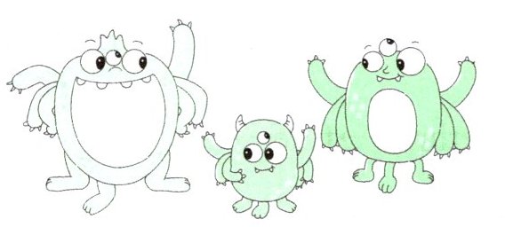 任务二:下面的小怪兽们都有几条腿呢?看图,选择正确答案。(