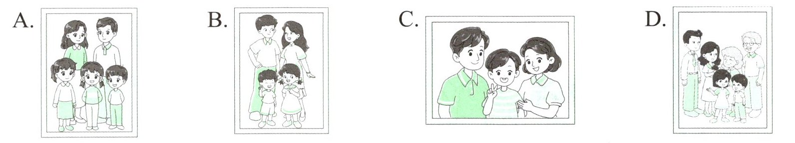 根据材料内容,为四名同学选择相应的全家福,将序号写在圆圈内。
