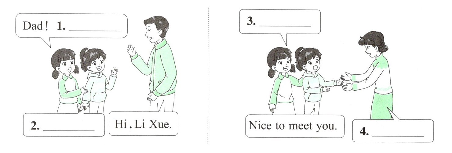 Fangfang 正在向朋友 Li Xue 介绍自己的家人。根据图片情景,选择合适的选项补全对话,将序号填在横线上。
