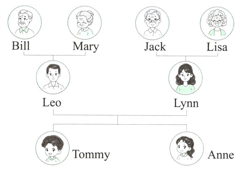 二、〔生活情境〕观察家庭关系图,判断每个人的描述是(T)否(F)正确。