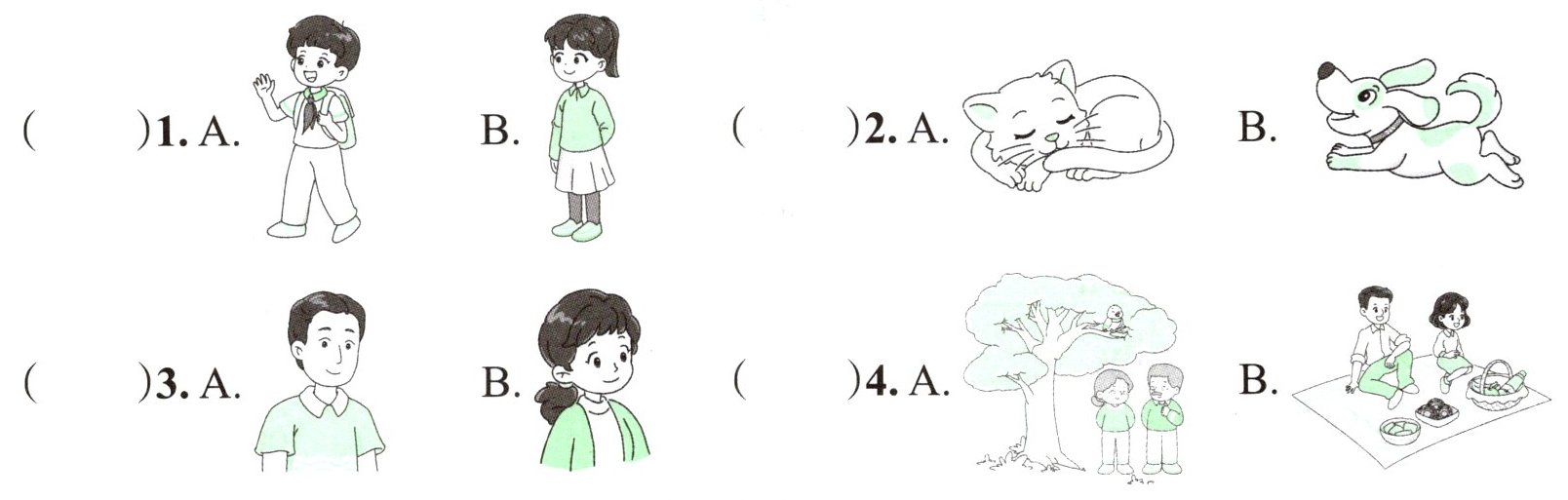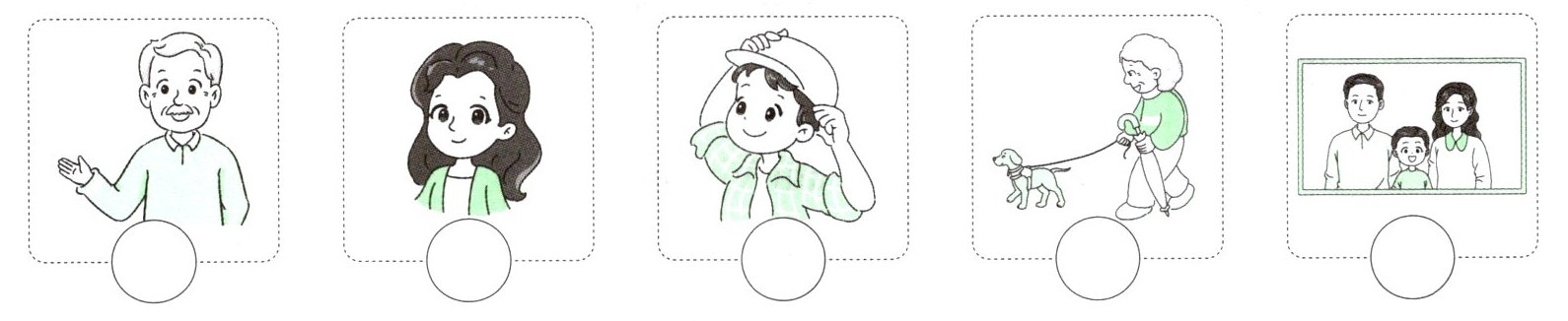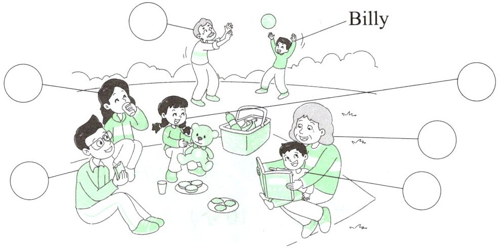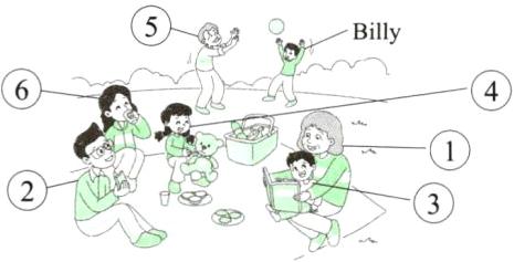 一、[新角度]下面是Billy和家人在公园野餐时的照片。根据所听单词顺序,为家庭成员标号。(12分)