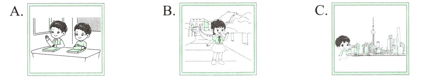 四、在英语角活动中,同学们正在介绍自己的好朋友。根据他们的介绍,找出对应朋友的照片,将序号填入题前括号内。