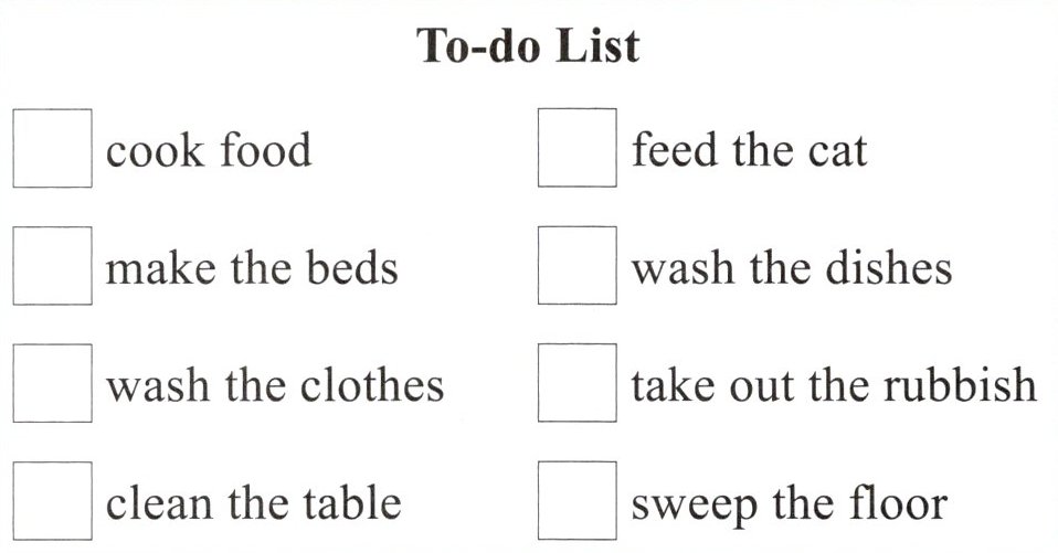 五、周六是奇奇家的家务劳动日,看看他们将要做什么吧!阅读短文,完成下列任务。