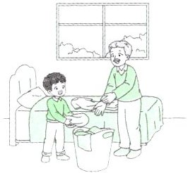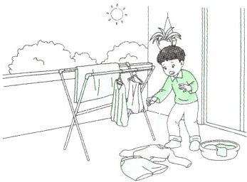 Grandpa needs to wash the clothes. But he is tired. I can help him.