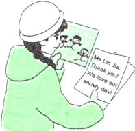 1. It never snows in Sanya. 2. She gives some toys to the children. 3. What is the weather like today? 4. Here is some snow for the children.