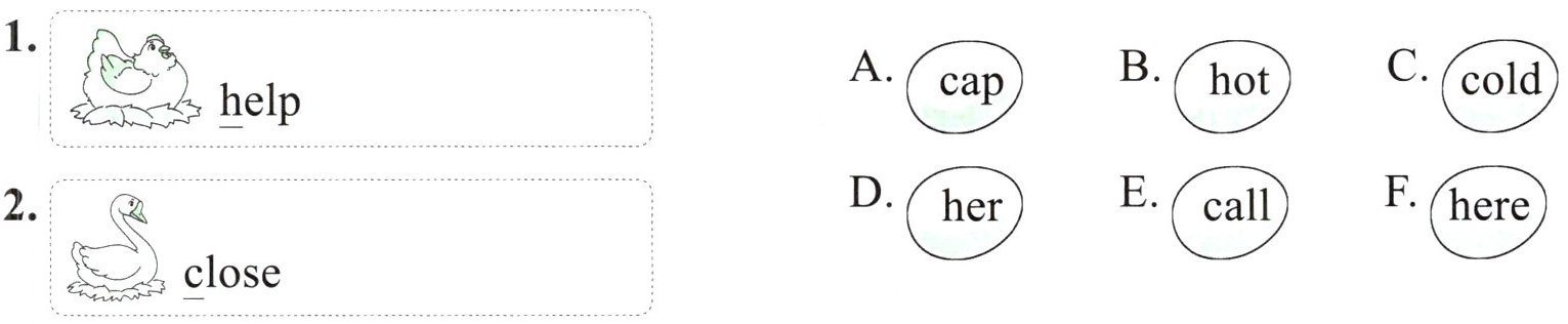 一、鸡妈妈和鹅妈妈正在寻找自己的蛋宝宝。根据所给单词画线部分的发音,选择含有相同发音的单词,将其序号填在相应位置,帮助蛋宝宝回家。