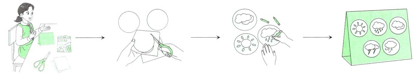 二、做好准备后,Amy开始制作天气立体书。根据图片提示,用数字1~4给Amy的制作步骤排序。