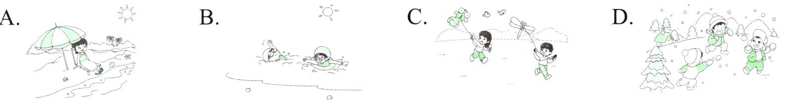 三、〔生活情境〕此刻,来自不同地方的小朋友们正在网上聊天。根据他们的对话内容,选择正确的活动图片,将序号写在横线上。