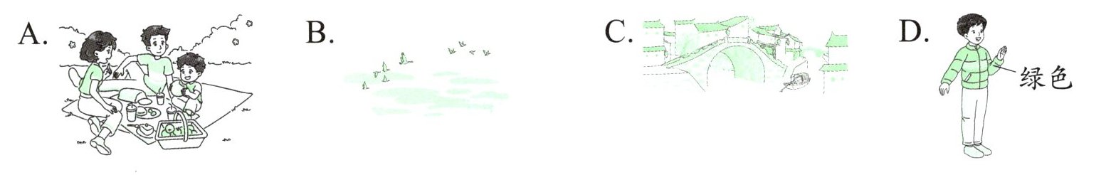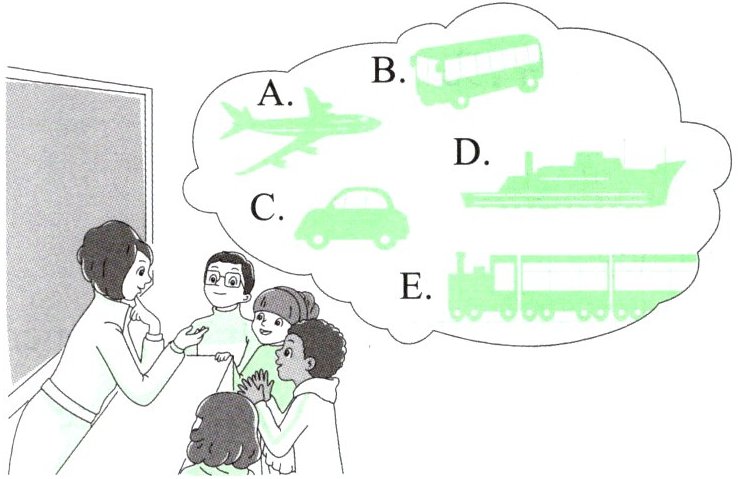 一、〔生活情境〕同学们和 Ms White 正在讨论外出旅行的方式。为下列交通方式选择相符的图片。
