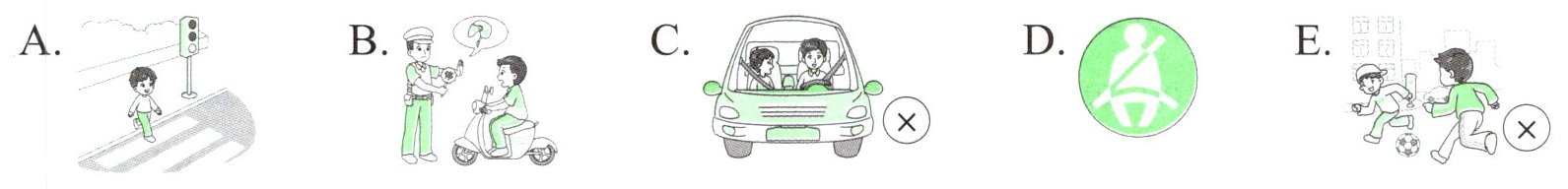 · Don't play football on the road E · Wear your seat belt. Stay in your seat. D