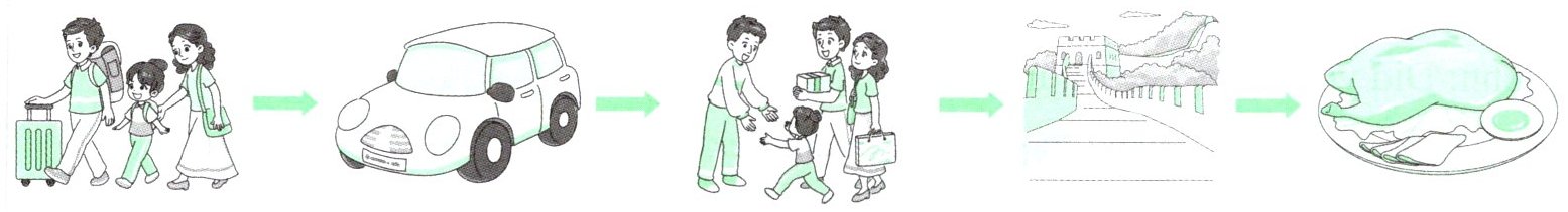 三、〔北京市改编·新题型〕Mary上周末和家人一起去北京旅行。请根据图片所示的顺序,用数字给下列句子排序。