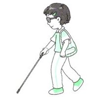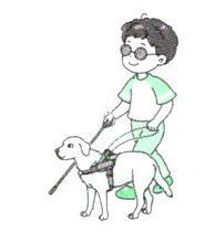 This is my friend, Ken. He is blind too. He can walk too. Who helps him walk? Bango,his dog. It is useful.
